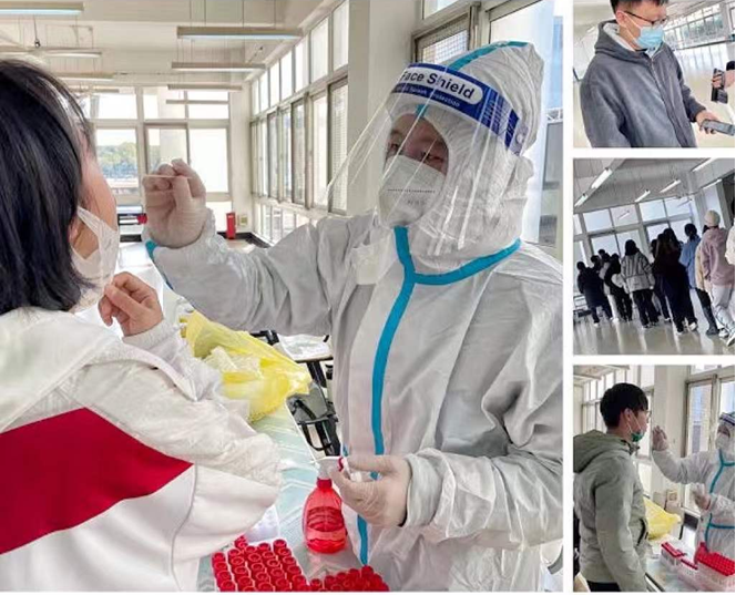 因为疫情,学院决定提前放寒假,2022年元旦后学生们的课程纷纷接近尾声,开启期末考试模式。寒假在即,为了方便我学院外省市同学顺利搭上返乡的高铁、飞机,开开心心与家人团聚,学院学生处与后保处保健站携手组织了一次核酸检测采样工作。学生处排摸了学生的需求量,确定了合适的时间段,保健站联系了上海迪安医学检验所有限公司的工作人员,通过多次协调沟通,确定于2022年1月6日及1月7日两天下午12点-16点,在浦东校区北图书馆一楼;1月6日下午14点-15点在徐汇校区学生事务中心一楼,分别为两校区有需要做核酸检测的同学进行核酸采样工作。