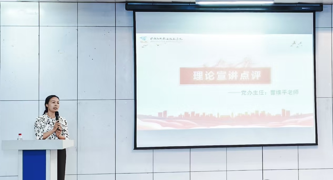 党办主任曹维平作为评委代表,对参赛辅导员的现场表现予以高度评价。她表示,本次宣讲活动具有三个鲜明的特点:一是政治引领鲜明,理论阐释有高度;二是切口小立意大,育人实践有温度;三是紧密结合专业,民航特色有深度。同时,她对辅导员们提出三点提升建议:进一步深化理论融合,增强思想渗透力;加强宣讲对象的针对性,贴近“Z世代”学生的认知特点;提升观点提炼的独创性,形成富有个人特色的独到见解,打造个性化的宣讲风格。
