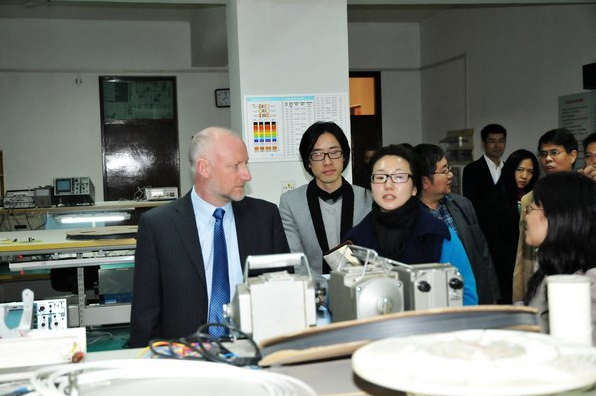 Dermot Swan先生一行在杨征副院长、孙群副书记、工程系罗玉梅副主任等带领下,参观学院飞机电子实训室