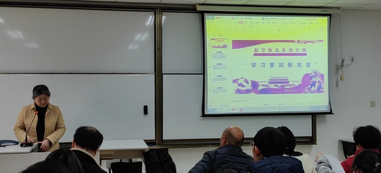 为深入学习贯彻党的二十大精神,深刻领会党的二十大审议通过的新党章修正案的科学内涵和重大意义,进一步提升支部党员的党性修养,3月3日下午13:00,航空制造系党支部在1号楼708教室开展了“学习贯彻新党章”专题会,由党支部书记李冰雪老师主持并主讲,全体党员参加了本次学习。