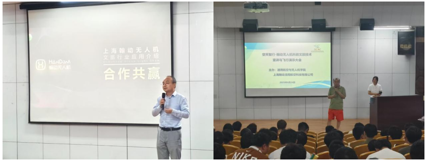 6月24日下午,上海翰动无人机公司受邀走进上海民航职业技术学院通用航空与无人机学院,举办了一场别开生面的行业宣讲会,并在校园操场进行了精彩的无人机编队飞行表演,吸引了众多师生驻足观看。