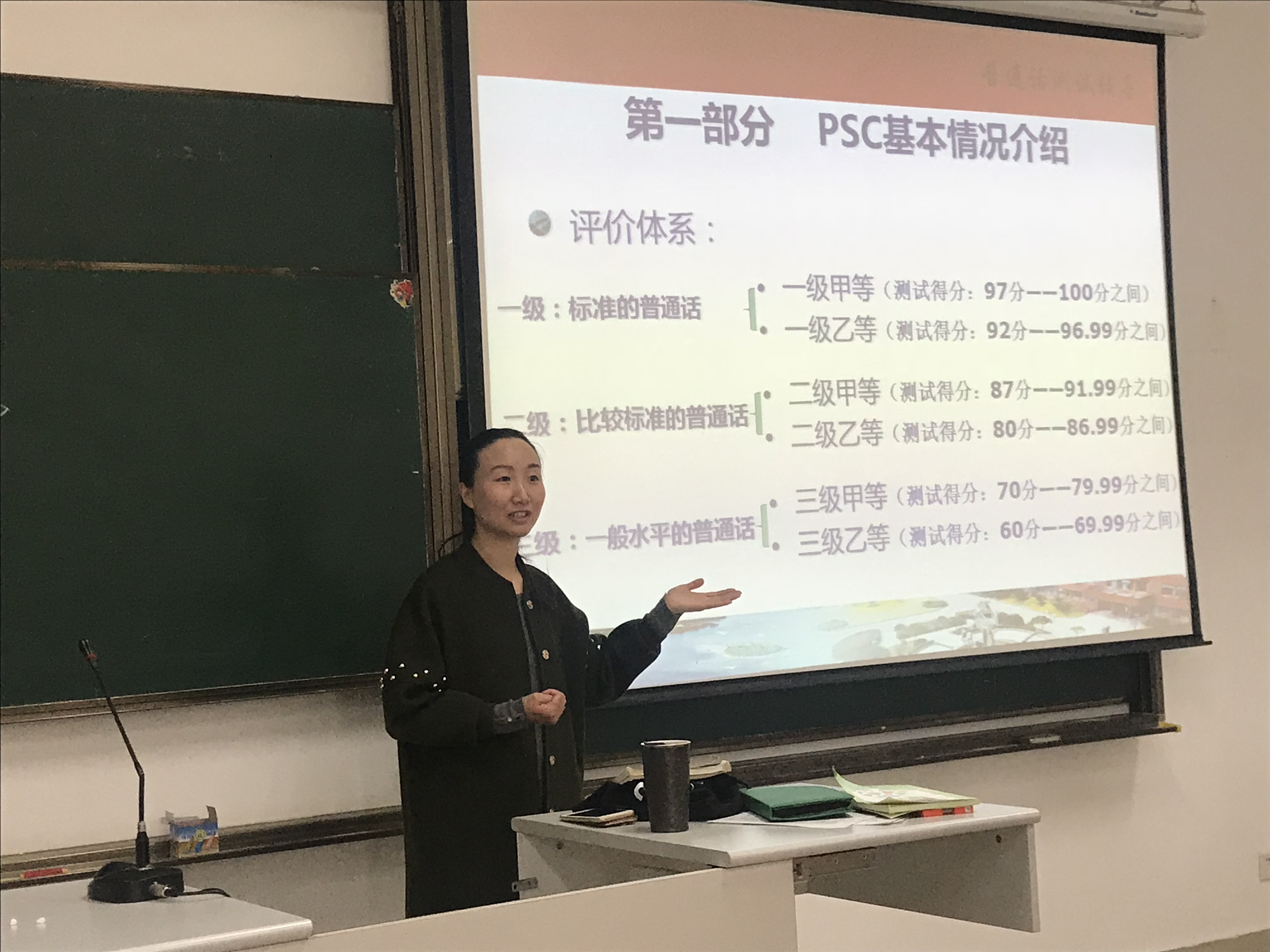 3月13日起,李君老师针对17级少数民族学生的普通话培训正式开始。针对学情,李君老师从普通话测试基本情况介绍和普通话声母训练、普通话韵母训练、普通话声调训练、普通话轻声儿化和多音词训练、普通话变调训练、普通话朗读训练、普通话说话训练、普通话水平测试考前综合训练等八个方面展开培训,一方面旨在提高少数民族学生参加2018年度普通话水平测试成绩,另一方面旨在落实国家普及普通话工作在我院制度化、规范化和科学化的进程。