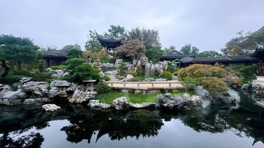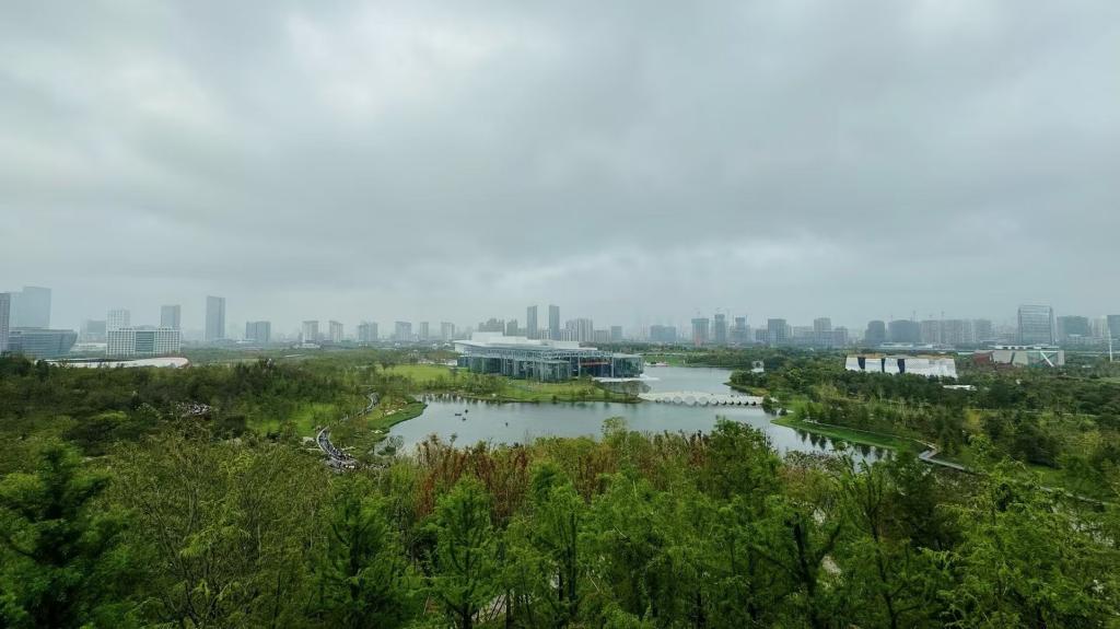 高约4800CM的双子山是本次活动的亮点。这是国内第一座高度超过40m的空腔结构人工仿自然山林,也是上海市区的第一高山,以其独特的造型和广阔的视野,成为新晋的热门打卡地。沿着山路蜿蜒攀登而上,置身山顶观景平台,俯瞰整个公园,山下的碧蓝的湖泊、远处如虹的长桥以及园中的亭台楼阁等尽收眼前,令人心旷神怡。