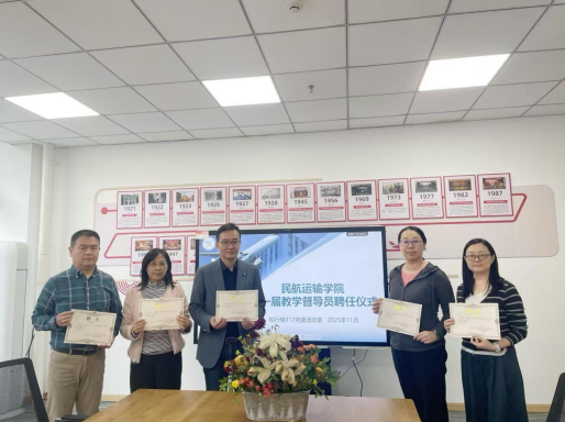 2025年11月6日下午,民航运输学院在知行楼312党建活动室隆重举行第一届教学督导员聘任仪式。学院教学督导组组长、副院长陆东出席仪式并提出督导工作要求。