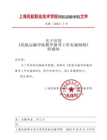 根据《民航运输学院教学督导工作实施细则》,本届督导组由7人组成,组长由学院副院长担任,成员涵盖专任教师、教学管理人员等。督导员均具备副高级及以上职称或相应职业资格,校内人员均拥有5年以上教学或管理经验,整体结构合理、专业覆盖全面,符合学校院级督导组人员配置要求。督导组将依据实施细则,每学期制定督导计划,开展课堂听课、信息反馈、专项检查等工作,并定期向教务处汇报督导情况,确保教学督导工作落到实处、取得实效。