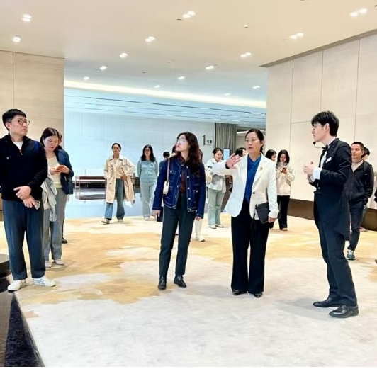 代表团在人力资源部朱云娟经理陪同下,实地参观了会展中心重点区域,了解企业在运营管理、文化展示、活动策划等方面的总体布局与发展方向。
