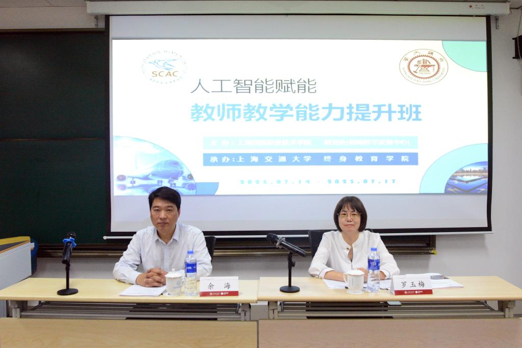 7月14日上午,上海民航职业技术学院“人工智能赋能教育教学能力提升班”开班典礼在徐汇校区1号楼605教室隆重举行。学院副院长罗玉梅和上海交通大学终身教育学院干部培训创新中心副主任余海出席典礼并致辞,教务处(教师教学发展中心)副处长王元英主持。来自二级学院和各部门的教师代表参加了本次开班仪式,共同开启了为期4天的AI赋能教育探索之旅。
