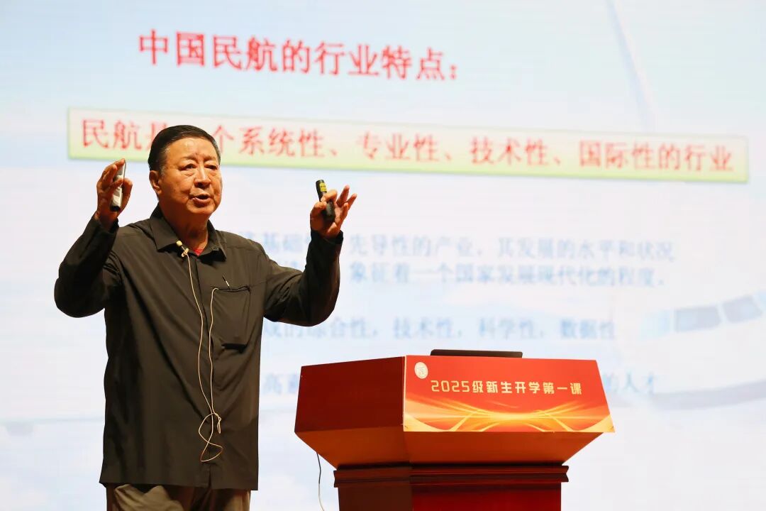 10月18日上午,我院2025级新生“开学第一课”在浦东校区大礼堂隆重举行。原中国民用航空总局局长、资深飞行员、国际民航组织终身成就奖获得者杨元元应邀担任主讲。在校的班子成员和相关部门负责人、部分教师代表及2025级全体新生以线上线下形式参与本次活动。飞机制造与维修学院党总支副书记徐添担任主持。