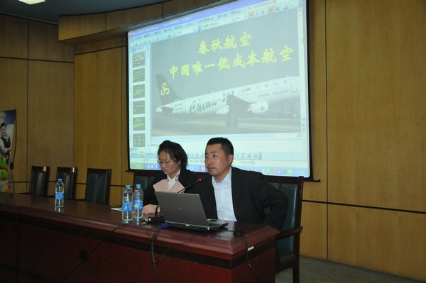 414日,春秋航空来我校举办宣讲会。此次宣讲会是春秋航空公司2014校园招聘的第一站,招募的岗位为客舱乘务学员、安全兼乘务学员。