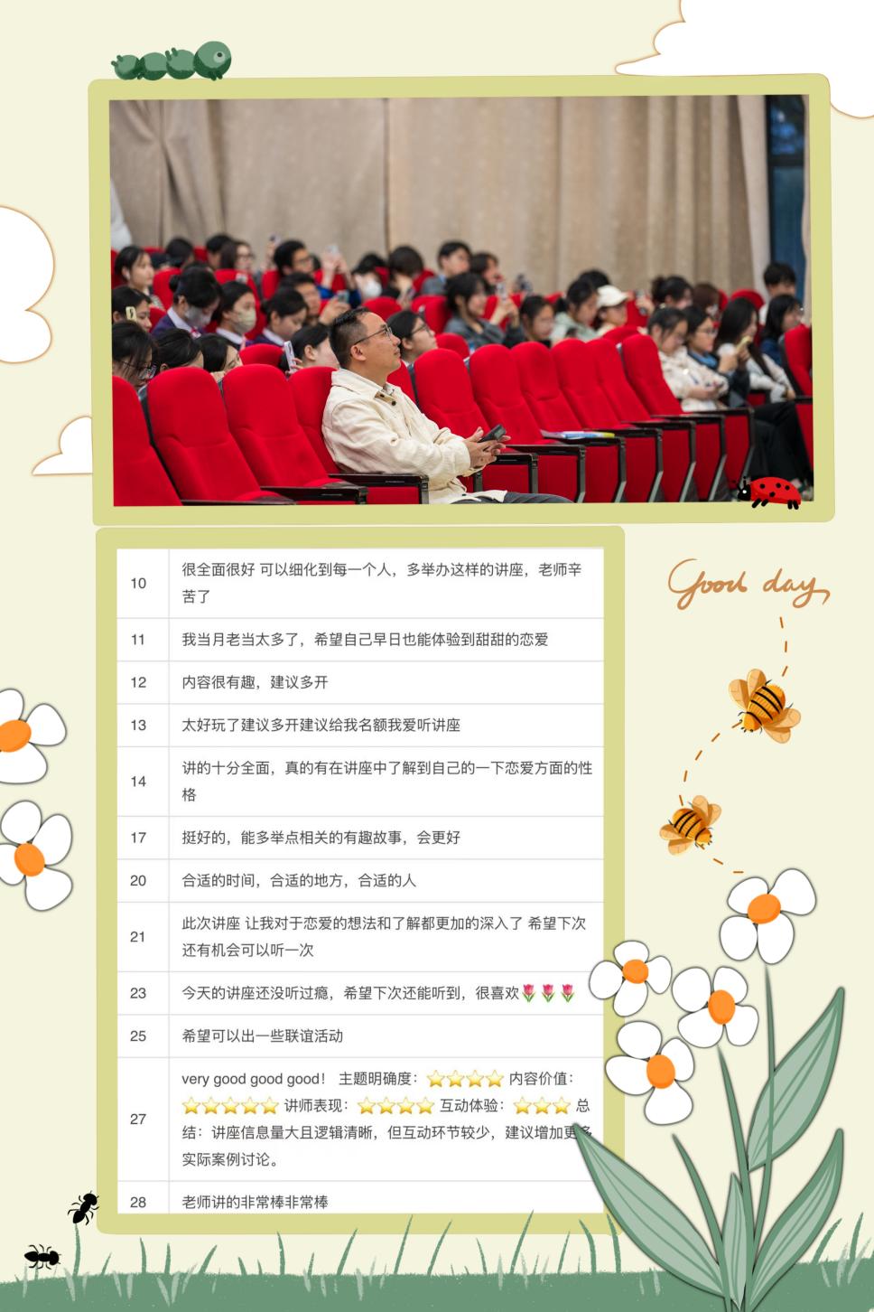 此次活动的圆满举办使同学们更好的认识到了九型人格学的深层含义,对自己的内心特质有了更深刻的了解。希望同学们在未来的生活中能够不断完善自身,建立起更健康的恋爱观,学会理解接纳对方不同的需要,学生工作处心理辅导中心也会持续推出各类心理主题的讲座满足同学们心理成长的需要。