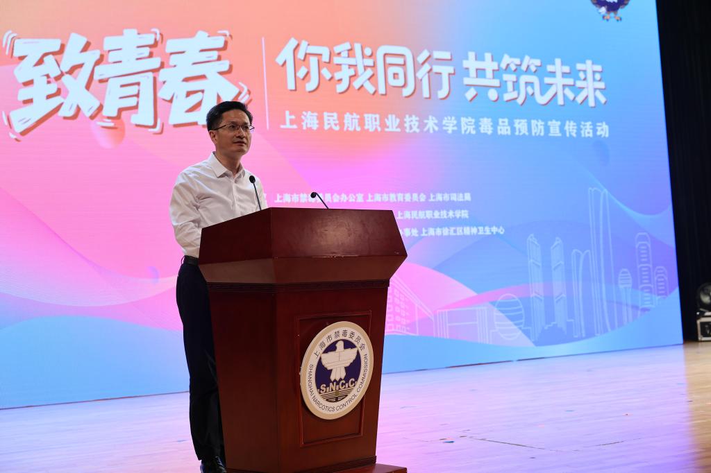 根据上海市和徐汇区有关部门要求,6月13日下午,“致青春-你我同行、共筑未来”毒品预防宣传进高校活动在我院徐汇校区大礼堂隆重举行。学院副院长孙暄、关心下一代工作委员会常务副主任于再同志出席活动并致辞,上海市禁毒办主任周国庆出席活动并发表重要讲话,市、区两级政法、公安、禁毒、卫健等相关部门工作人员及民航乘务学院师生共500余人参加。