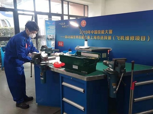 2019年中国技能大赛——第46届世界技能大赛上海市选拔赛飞机维修项目,今天在上海民航职业技术学院开赛。大赛以“新青年、新技能、新梦想”为主题,由上海市人力资源和社会保障局等7家单位共同主办,上海市职业技能鉴定中心组织实施,上海民航职业技术学院承办,上海民航职院与东航集团共同担任技术支持单位。来自上海民航职业技术学院、中国东方航空集团有限公司和上海工程技术大学的9名选手参赛,成绩优秀的选手将进入上海市集训队,并有机会代表上海市参加明年的全国选拔赛,最终剑指2021年在上海举办的第46届世界技能大赛。
