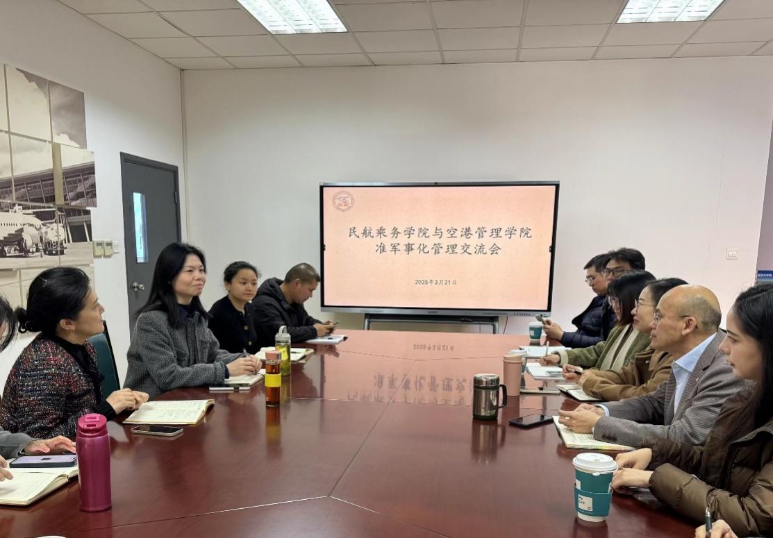 为进一步提升学生管理水平,培养高素质民航专业人才,空港管理学院与民航乘务学院于3月21日联合举办了准军事化管理交流会。出席本次会议的有空港管理学院院长孙军、党总支副书记柏婷、学工办副主任陆薇,民航乘务学院院长杨晓青、党总支副书记汪慧、学工办主任李婷、学工办副主任饶德江,以及两院辅导员代表、教导员代表。两院围绕准军事化管理经验、实践成果、创新模式及未来发展展开了深入交流与探讨。