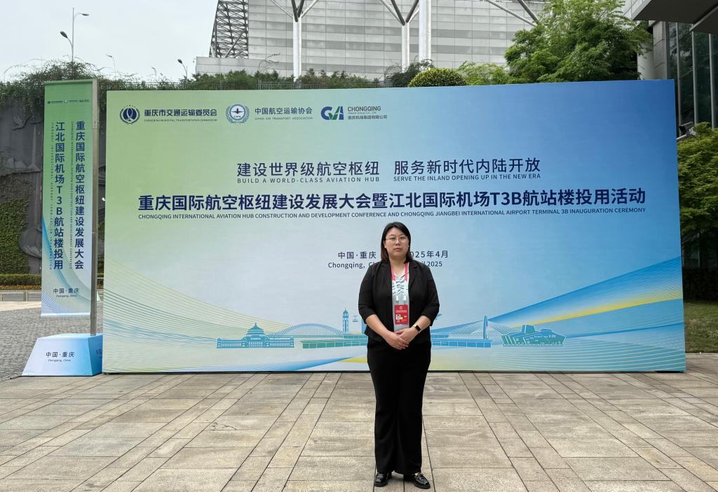 为全面贯彻习近平总书记关于交通强国的重要论述,深入贯彻习近平总书记视察重庆重要讲话重要指示精神,奋力打造新时代西部大开发重要战略支点、内陆开放综合枢纽,加快推进重庆区位门户复合型国际航空枢纽建设,2025年4月8日-9日在重庆召开“重庆国际航空枢纽建设发展大会暨江北国际机场T3B航站楼投用活动”,空港管理学院委派运行管理教研室骨干教室董冰艳参会学习。