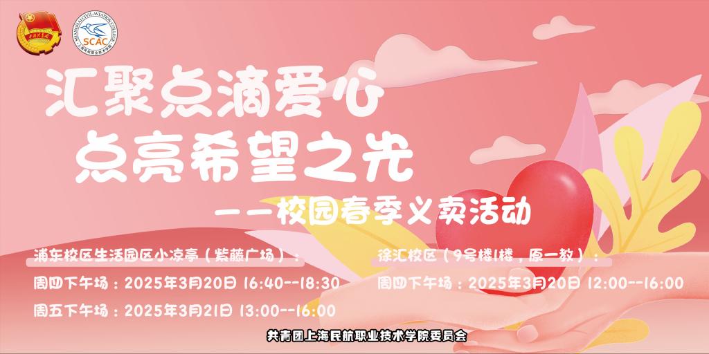 春满校园,善心启航。三月的春风裹挟着玉兰花香,一场以“汇聚点滴爱心 点亮希望之光”为主题的春季义卖盛典在校园温情启幕。2025年3月20日至3月21日,学院团委联动五个二级学院,将雷锋精神化作春日暖阳,以青春担当书写新时代雷锋故事,让爱与希望在民航校园绽放光彩。