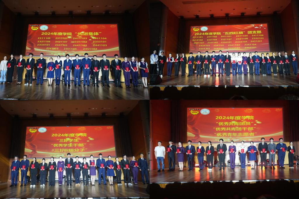 到场领导嘉宾分别为第二届“青春创客赢”民航青年创新创效大赛铜奖团队、2024年度学院教工优秀共青团干部、2024年度“上海市基层团组织典型选树”通报表扬集体、2024年度学院“先进集体”、2024年度学院“五四红旗”团支部、2024年度学院“三好学生”、“优秀学生干部”、“三好积极分子”、2024年度学院“优秀共青团员”、“优秀共青团干部”、“优秀青年志愿者”、2024年度学院“大学生榜样人物”获奖者代表颁发奖状。