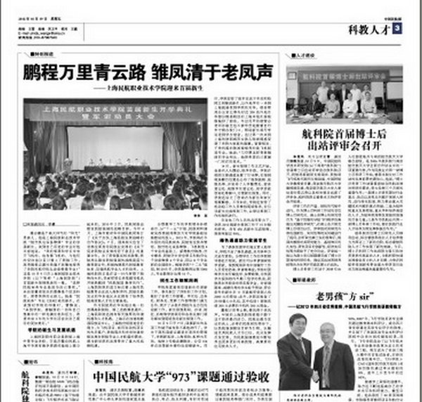 《中国民航报》10月19日第3版报道我院新生报到文章