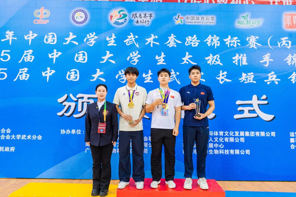 10月25日至31日,由教育部中国大学生体育联合会主办的2025年中国大学生武术套路(丙组、丁组)锦标赛、第5届中国大学生太极推手锦标赛、第5届中国大学生武术长短兵锦标赛在南通体育会展中心举行。本次赛事共吸引了全国278所高校的3000余名武术健儿,是今年全国级别最高、规模最大、影响力最广的高校武坛盛会。我院代表队发挥出色,以精湛技艺与优良赛风斩获一金三银一铜,并夺得太极推手团体季军。 沉着应战显真功,太极推手...